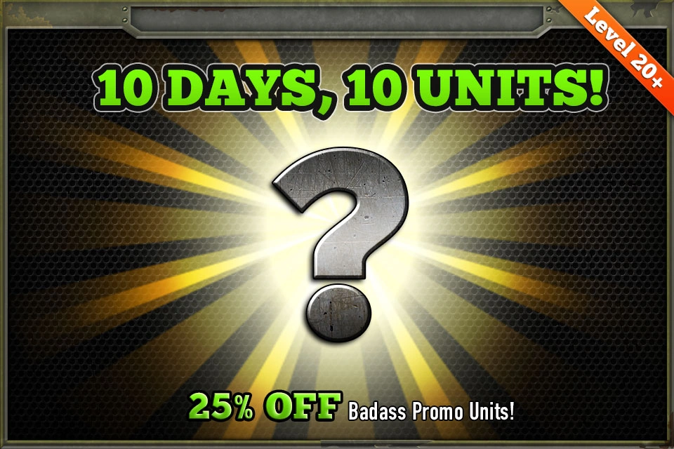 Beginning at 11am pst June 19th - June 29th, a past promotional unit was announced (one per day). In celebration of each unit, they were available for 25% less than their original price. This special release was available to all players level 20 and above [1].