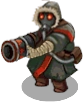 The Brutal Bombadier is a high-level Raider who combines both the spread-out rocket volley attack of the Raider Bombadier and the targeted rocket attack of the Raider Cannoneer, but with much greater potential to harm even high level player formations.