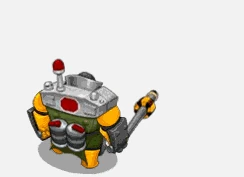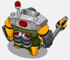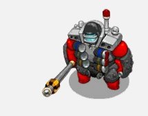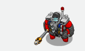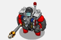The Peacemonger is an infantry unit that relies on bulk and survivability as a means of both with aggression and going passive. It is an enhanced, bulkier version of the Peace Keeper. It starts with 405 hitpoints (240 , 165 ), along with 3 attacks, but only 2 ability slots. At level 2, it unlocks an additional Tasers attack.
