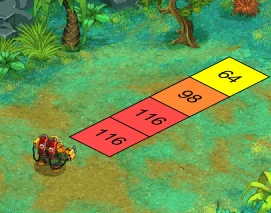 300, along with 3 attacks, but only 2 ability slots: a range 1 "wide" flame attack, a straight-ahead 3-range flame attack, and a powerful melee attack.